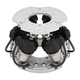 Die typische Struktur eines Hexapods, auch als Stewart-Plattform bezeichnet, besteht aus sechs längenveränderlichen Aktoren, die über Gelenke mit der Grundplatte und einer Bewegungsplattform verbunden sind, die die Last trägt. Aufgrund des parallelkinematischen Designs können Hexapoden komplexe mehrachsige Bewegungsprofile mit hoher Wiederholgenauigkeit, Dynamik und Stabilität ausführen. Gleichzeitig zeichnen sie sich durch eine kompakte Bauform aus.