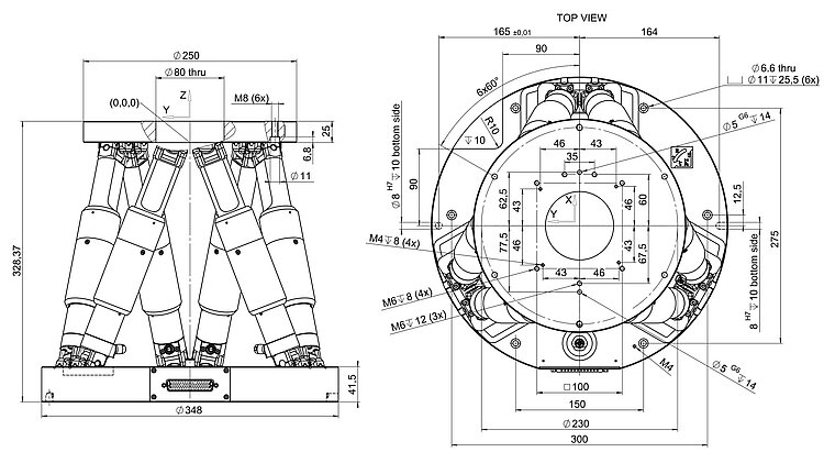 Präziser Hexapod; DC-Getriebemotor; Rotationsencoder; 80 kg Nutzlast; 0,15 mm/s maximale Geschwindigkeit; vakuumkompatibel bis 10-6 hPa; Kabelsatz 2 m vakuumseitig; Durchführung. Luftseitige Anschlusskabel sind nicht im Lieferumfang enthalten und müssen separat bestellt werden.