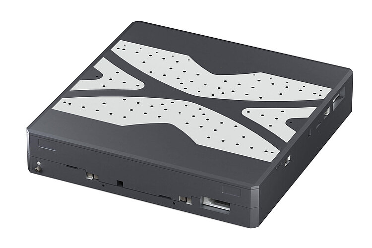Hochpräzisions-Kreuztisch; Eisenloser 3-Phasen-Linearmotor; 305 mm × 305 mm Stellweg (X × Y); 50 N Belastbarkeit; 200 mm/s × 200 mm/s maximale Geschwindigkeit; Inkrementeller Linearencoder, 20 µm Sensorsignalperiode, Sin/Cos, 1 V Spitze-Spitze