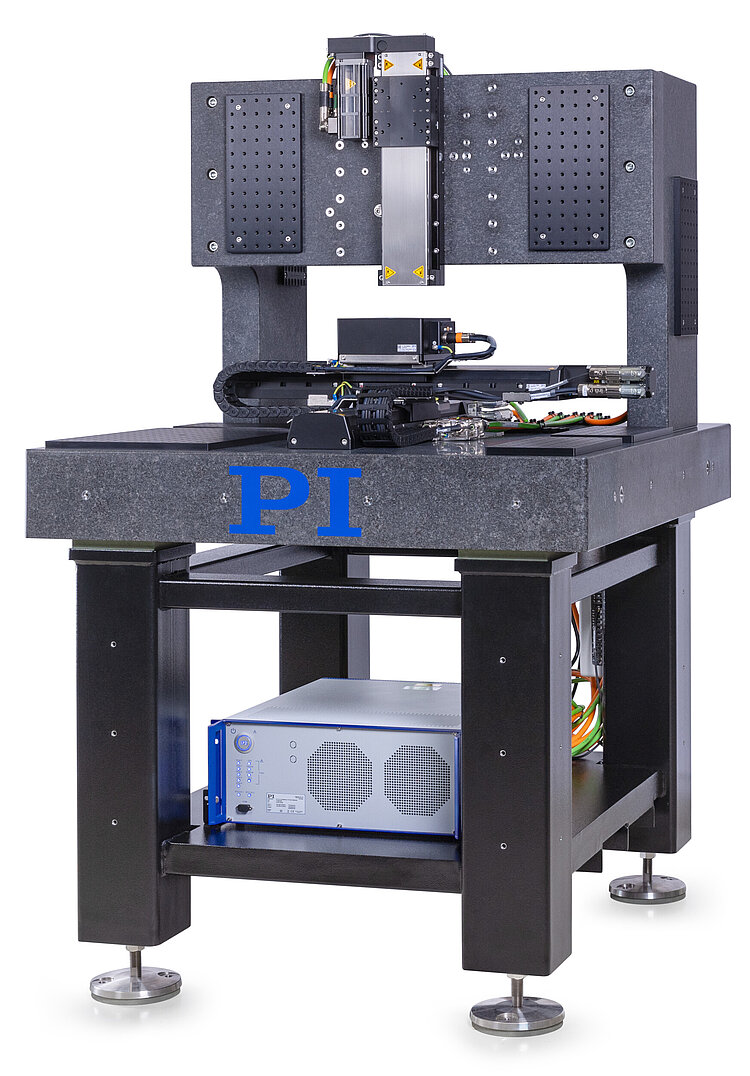 Zur Verfügung stehen Systeme in drei Performanceklassen mit passendem ACS Hochleistungs-Controller von PI. Die Basis bildet ein XY-System aus Hochlast-Lineartischen, das um einen Hubtisch als 3. Achse sowie eine Z-Achse erweitert werden kann. Grundplatten aus Granit, Achshalterungen aus Aluminium oder Granit sowie weiteres Zubehör, wie zum Beispiel ein Grundgestell mit Schwingungsdämpfer, runden das Angebot ab. Ihr konfiguriertes System wird mit den passenden Kabeln sowie entsprechenden Kabelführungen ausgeliefert.