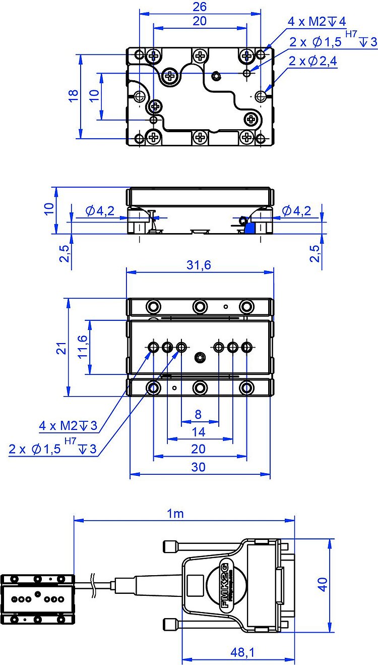 Die Lineartische sind mit berührungslos messendem optischen Linearencoder sowie Referenzschalter ausgestattet. Auflösung versionsabhängig 4 nm oder 1 nm.