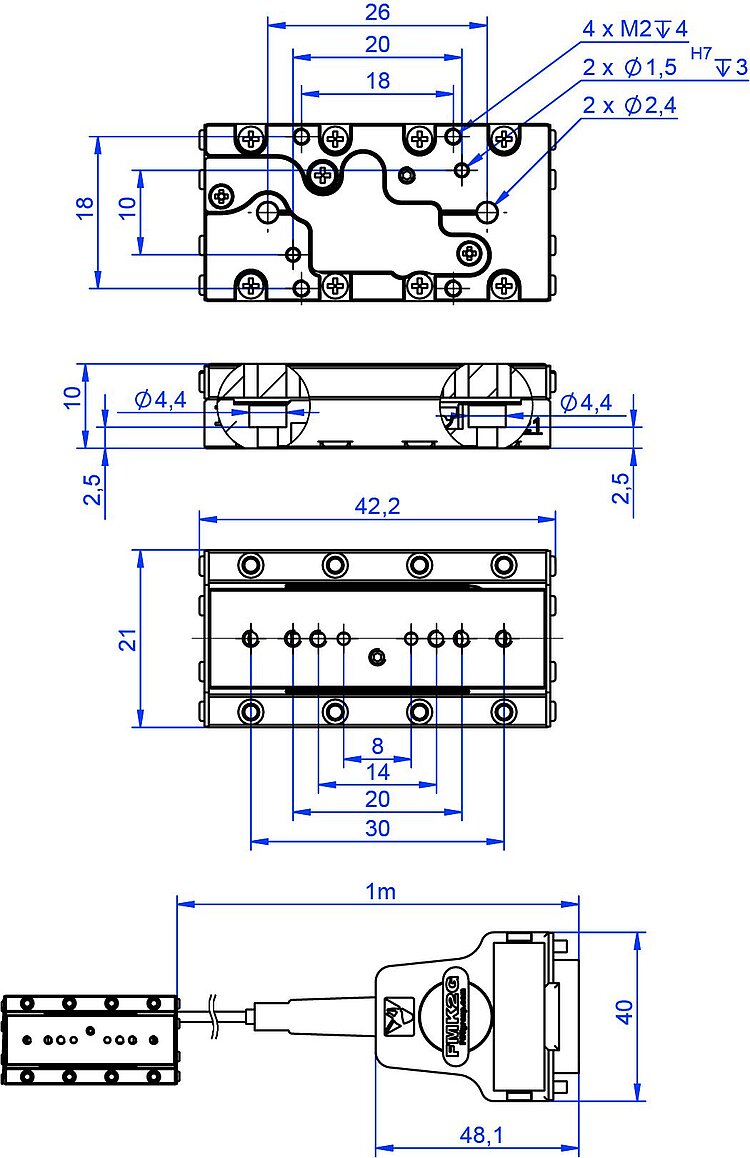 Q-Motion® Miniatur-Lineartisch, piezoelektrischer Trägheitsantrieb, 32 mm Stellweg, Linearencoder, 1 nm Auflösung, 0,6 N Antriebskraft, Abmessungen 21 × 42 × 10 mm (B × L × H)