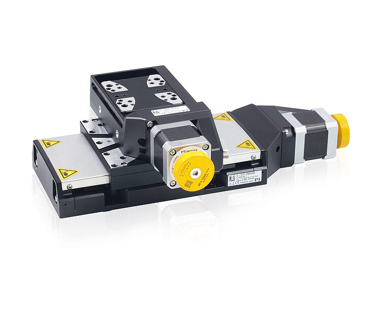 Hochpräziser Lineartisch; Bürstenloser DC-Motor; 52 mm Stellweg; 500 N Belastbarkeit; 90 mm/s maximale Geschwindigkeit; Kugelumlaufspindel; Inkrementeller Rotationsencoder, 20000 Impulse/U Auflösung, A/B-Quadratur, RS-422; Inkrementeller Linearencoder, 20 µm Sensorsignalperiode, Sin/Cos, 1 V Spitze-Spitze