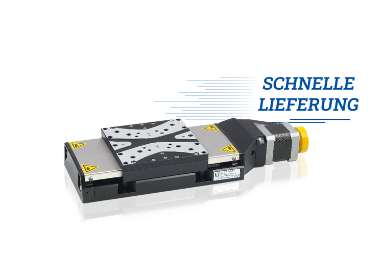 Hochpräziser Lineartisch; 2-Phasen-Schrittmotor; 155 mm Stellweg; 500 N Belastbarkeit; 45 mm/s maximale Geschwindigkeit; Kugelumlaufspindel