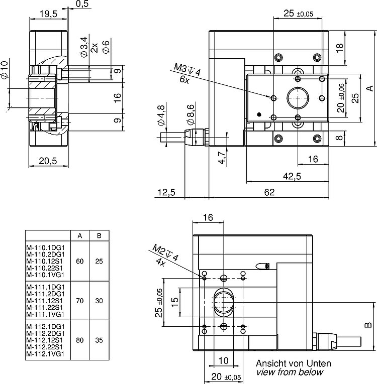 | Bewegen | M-110.1DG1 | M-110.2DG1 | M-110.12S1 | M-110.22S1 | M-111.1DG1 | M-111.2DG1 | M-111.12S1 | M-111.22S1 | M-112.1DG1 | M-112.2DG1 | M-112.12S1 | M-112.22S1 | Toleranz |