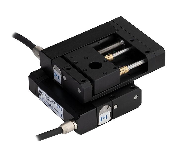 Lineartisch mit kompakter Baugröße durch gefalteten Antrieb mit Riemengetriebe. Freie Apertur mit 10 mm Ø. XY-Aufbauten sind direkt montierbar ohne Adapterplatte.