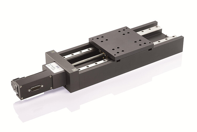 Präziser Hochlast-Lineartisch; DC-Motor mit ActiveDrive; 100 mm Stellweg; 500 N Belastbarkeit; 100 mm/s maximale Geschwindigkeit; Kugelumlaufspindel; Inkrementeller Rotationsencoder, 4000 Impulse/U Sensorauflösung, A/B-Quadratur, RS-422