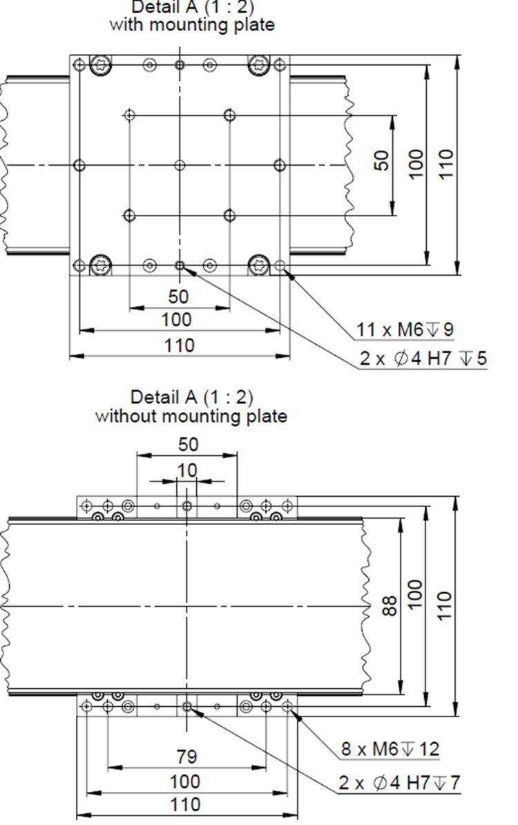z. B. M6 50 mm × 50 mm and 100 mm × 100 mm