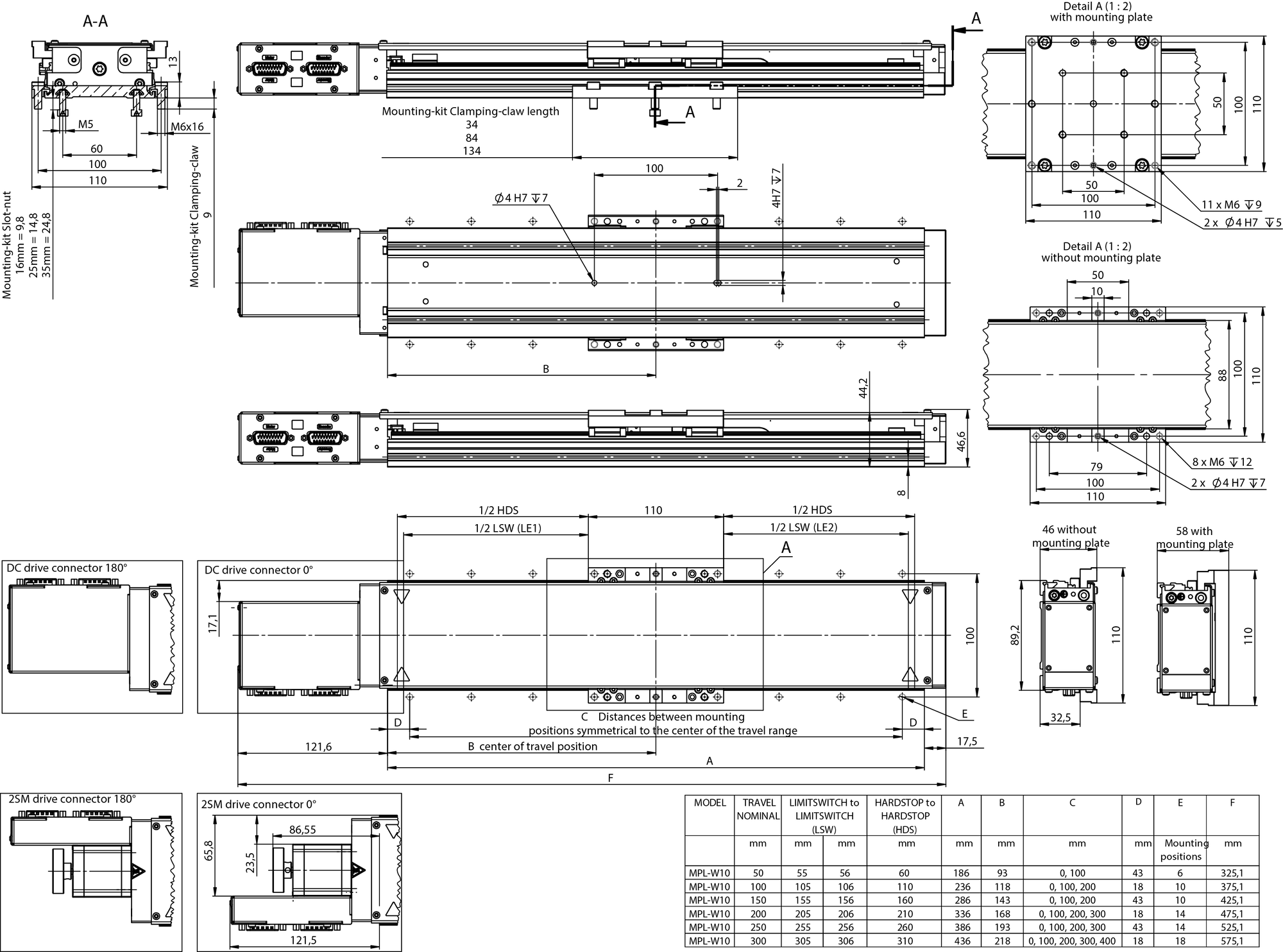 - 50 mm bis 300 mm Stellweg