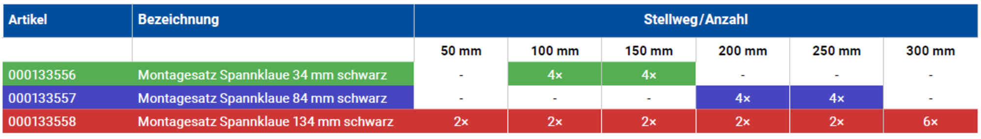 | Stellweg in X [mm] | 50 | 100 | 150 | 200 | 250 | 300 | |||