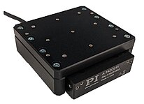 Hinweis zu Positioniergenauigkeit, kalibriert: Verbesserte Genauigkeit möglich durch Controller-gesteuerte Fehlerkompensation. Der Tisch muss mit einem Controller von PI geordert werden, um diese Werte zu erreichen.