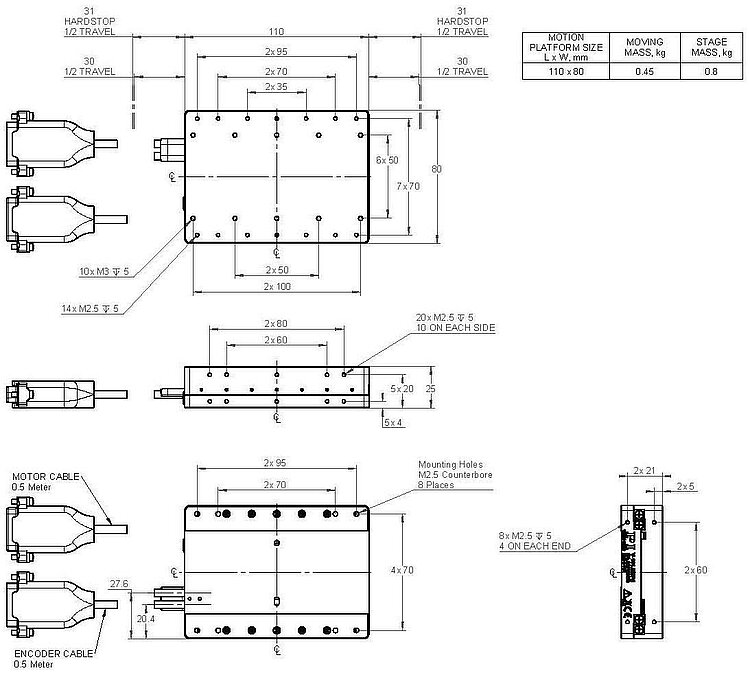 | Abmessungen Bewegungsplattform | 80 × 80 mm | 110 × 80 mm | 170 × 80 mm | |