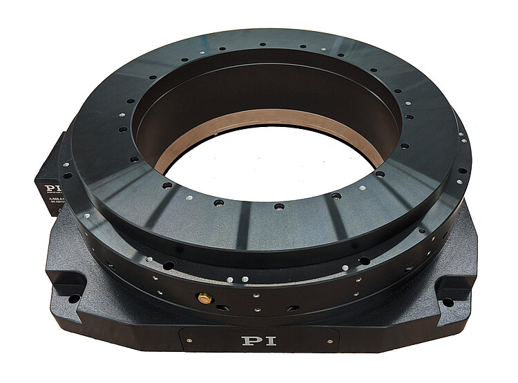 PIglide RLA Rotationstisch mit Luftlager; eisenloser 3-Phasen-Torquemotor; 360 ° Rotationswinkel; 150 N Belastbarkeit; 500 min⁻¹ maximale Winkelgeschwindigkeit; absolutes Winkelmesssystem, 0,0015 µrad Sensorauflösung, rotatorisch, BiSS-C