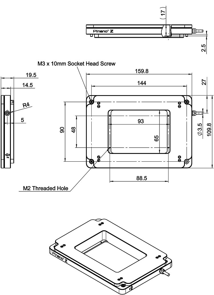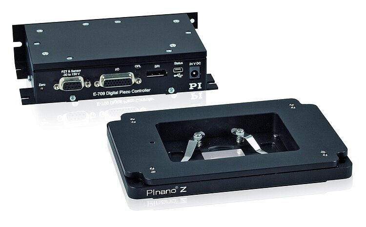 PInano® Z-Piezoscannersystem; 100 µm Stellweg; freie Apertur für Objektträger; piezoresistive Sensoren; mit USB-Digitalcontroller