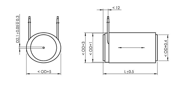Stellweg | Durchmesser OD | Länge L | Blockierkraft | Steifigkeit | Elektrische Kapazität | Resonanzfrequenz | |