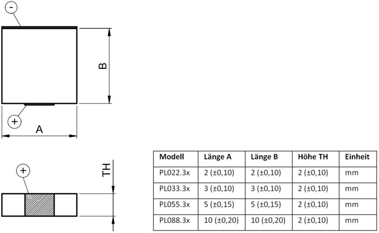 | PL022.3x | PL033.3x | PL055.3x | PL088.3x | Einheit | Toleranz | |