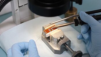 Standardkontakte für Piezoaktoren sind 100-mm-Anschlusslitzen oder Lötpunkte. Je nach Piezoelement werden unterschiedliche Litzen nach AWG-Standard verwendet. PICA Shear für kryogene und UHV-Umgebung verwenden Tantal-Elektroden, die mit leitfähigem Klebstoff oder Schweißen kontaktiert werden können. Bitte beachten Sie die Löthinweise für das jeweilige Produkt.