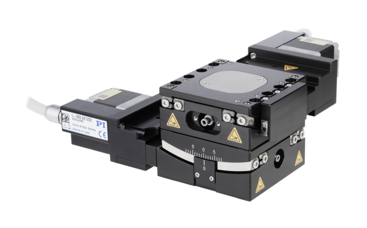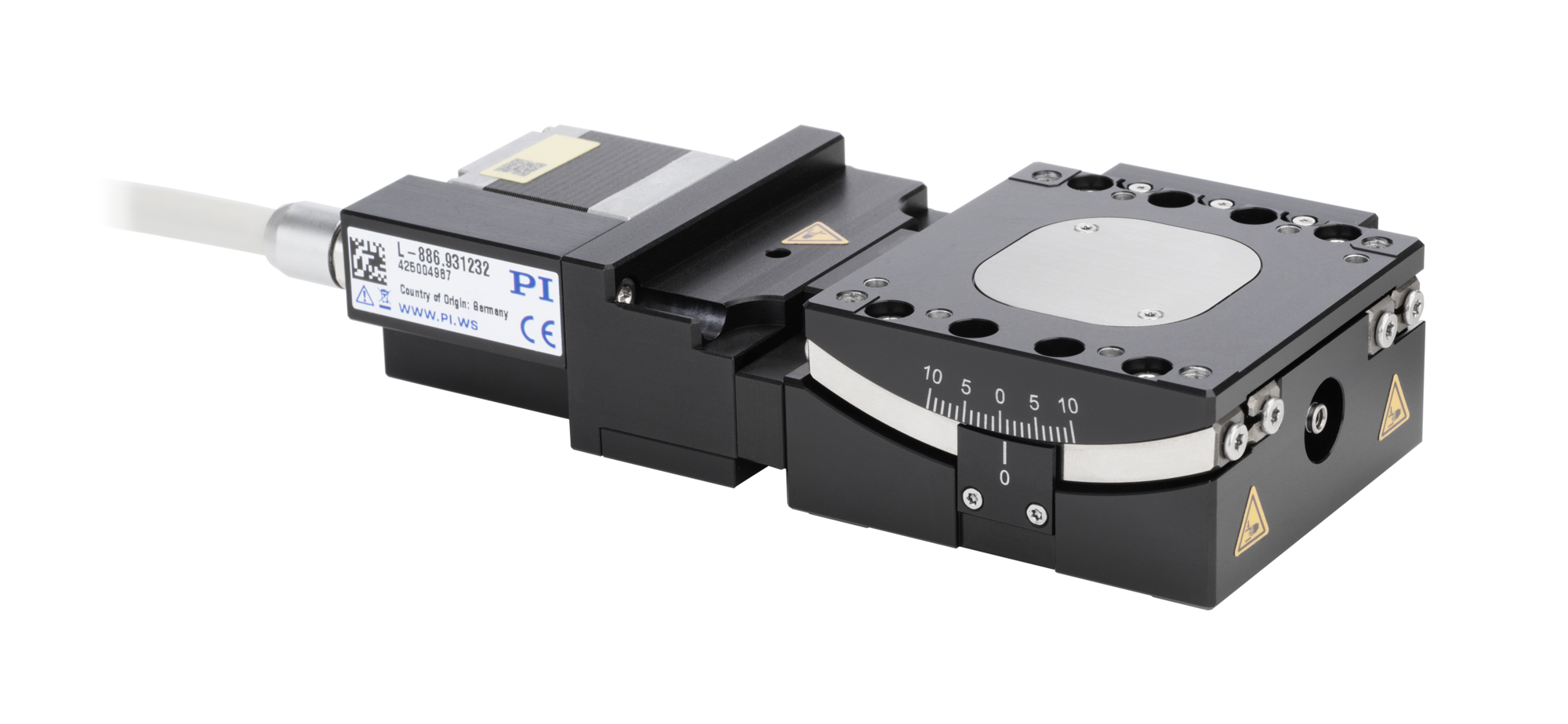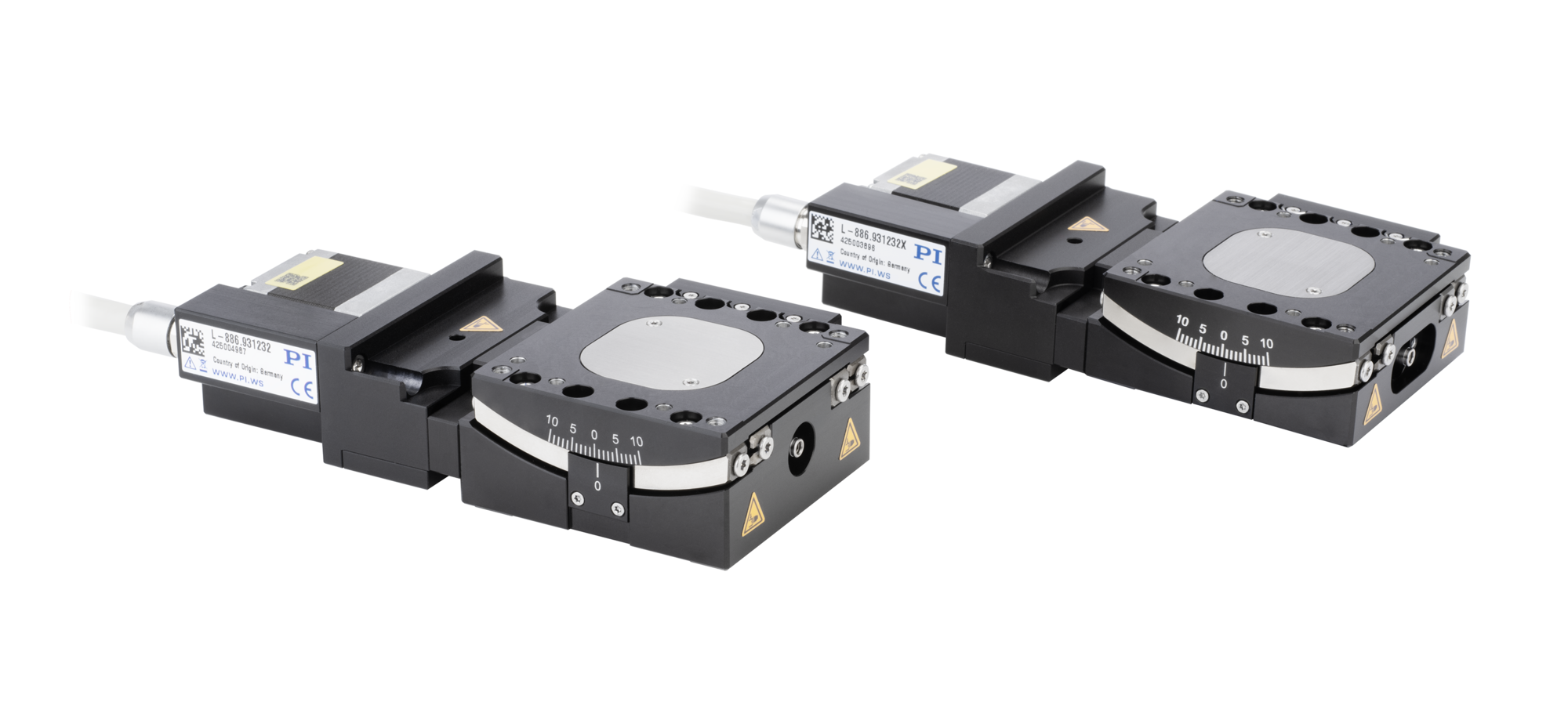 Die Goniometer können auf L-836 Lineartischen montiert werden. Für 2-Achsenbewegungen sind die L-886 Modelle stapelbar. Wird dabei ein L‑886.931232X auf einen L‑886.921232[X] montiert, haben die Modelle einen gemeinsamen Drehpunkt.