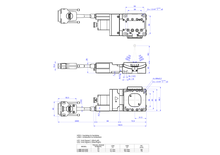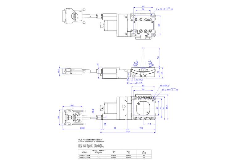 | Bewegen | Einheit | Toleranz | L-886.921232 /L-886.921232X | L-886.931232 /L-886.931232X[L] |