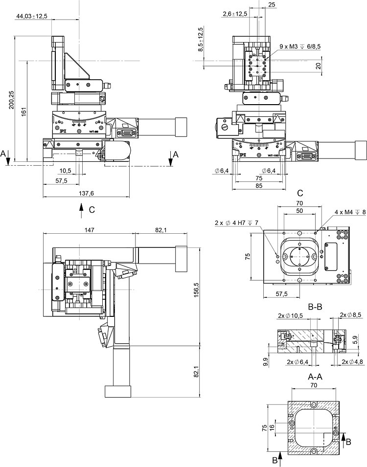 Der XYZ-Aufbau des Faserjustage-Systems besteht aus drei motorisierten Linearverstellern der M-122-Reihe für die Linearbewegungen und den Goniometern WT-85 und WT-100 für die Winkelbewegungen. Alle Versteller zeichnen sich durch hohe Präzision und Robustheit aus. Da alle Antriebe über Positionssensoren verfügen, können z. B. Kollisionen mit einem teuren Silizium-Wafer zuverlässig verhindert werden.