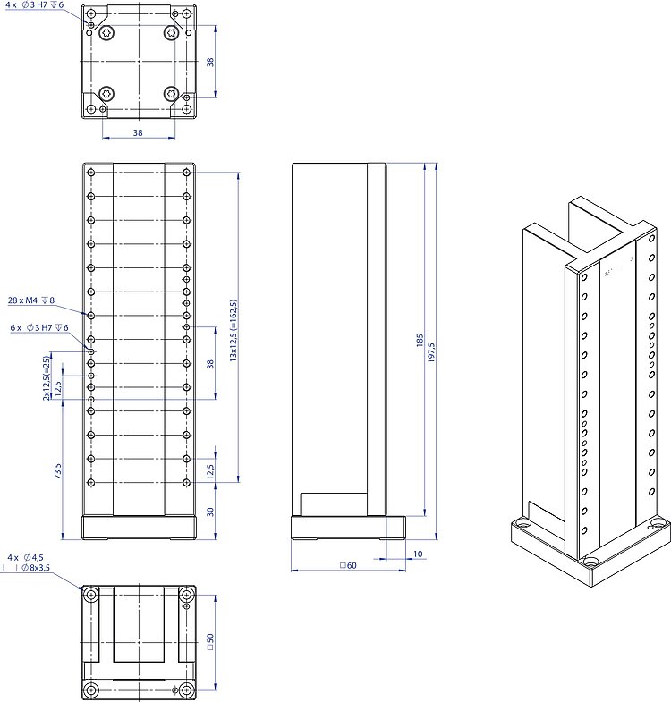 Adapterwinkel zur vertikalen Montage von L-8x6 Tischen; Länge 197,5 mm; inkl. Montagezubehör
