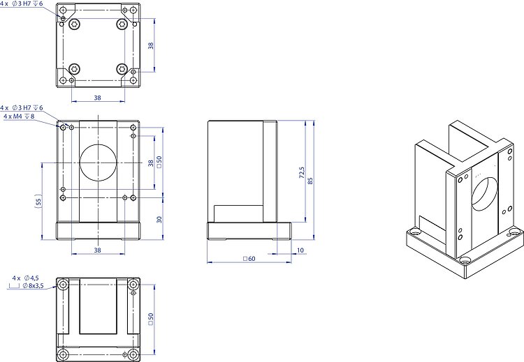 Adapterwinkel zur vertikalen Montage von L-8x6 Tischen; Länge 85 mm; inkl. Montagezubehör
