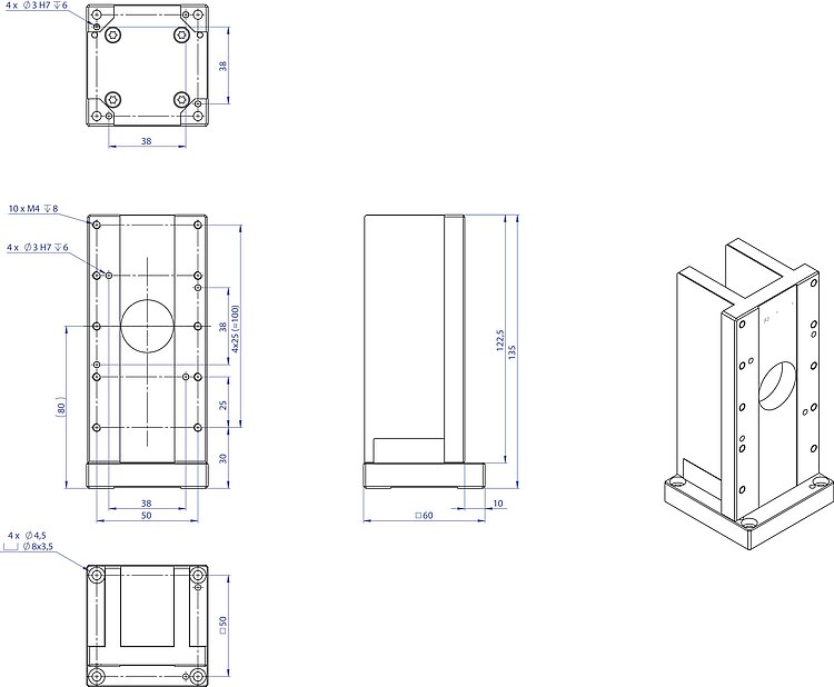 Adapterwinkel zur vertikalen Montage von L-8x6 Tischen; Länge 135 mm; inkl. Montagezubehör
