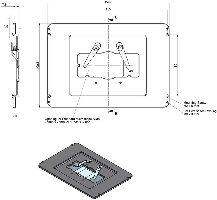 Halter für Objektträger, für P-736.ZCN2S / P-736.ZRN2S PInano® Z-Piezoscannersysteme (kompatibel mit U-780.DNS-Systemen für Nikon-Mikroskope)