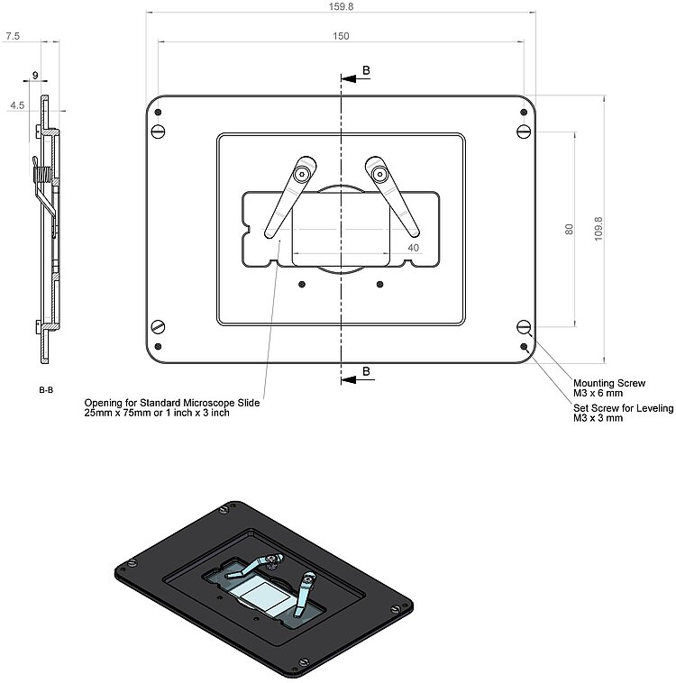 Halter für Objektträger, für PD73Z2COW / PD73Z2ROW PInano® Z-Piezoscannersysteme (kompatibel mit U-780.DOS-Systemen für Olympus-Mikroskope)