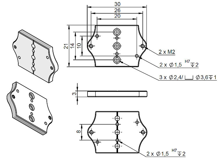 Adapterwinkel für die vertikale Montage von Q-521 Miniatur-Lineartischen mit 12 mm Stellweg, nicht eloxiert