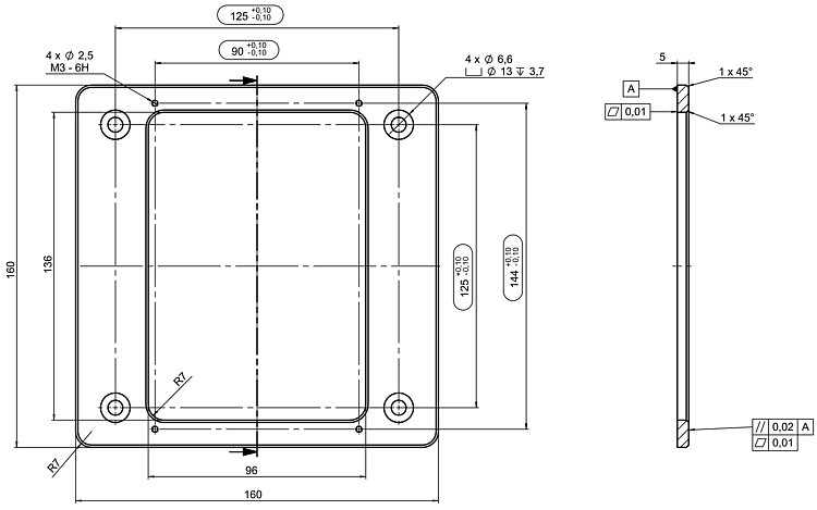 Adapterplatte für die Montage des PInano® Z-Mikroskopiescannertisches P-736.ZRxS auf dem U-760 Kreuztisch.