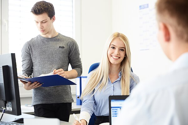 Du interessierst dich für wirtschaftliche Zusammenhänge und hast Spaß am Umgang mit Menschen? Dann könnte die Berufsausbildung zum Industriekaufmann (m/w/d) das Richtige für dich sein. Im Rahmen der dreijährigen Ausbildung wirst du von unseren erfahrenen Fachausbildern umfassend und systematisch mit den Betriebsabläufen und Teilprozessen vertraut gemacht. Dabei durchläufst du alle kaufmännischen Abteilungen wie Material-, Absatz- und Produktionswirtschaft, das Personalwesen, Finanz- und Rechnungswesen sowie die Marketingabteilung und darfst sogar in die Fertigung hineinschnuppern. Darüber hinaus wirkst du früh an Projekten in Betrieb und Berufsschule mit. Mit Abitur kannst du sogar innerhalb von zwei Ausbildungsjahren Industriekaufmann mit Zusatzqualifikation zum Außenhandelsassistent werden.
