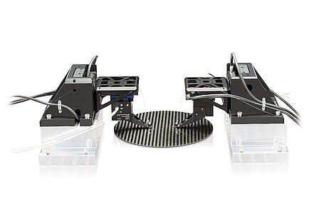 Beide Systeme gibt es wahlweise für einseitige oder beidseitige Positionierungsaufgaben. Zum Lieferumfang gehören jeweils ein leistungsfähiger Digital-Controller (E-712), Firmware-Routinen mit Algorithmen für eine sehr schnelle Positionierung sowie ein um-fangreiches Softwarepaket. Beim parallelkinematischen Aufbau wird auch der passende Hexapod-Controller (C-887) mitgeliefert.